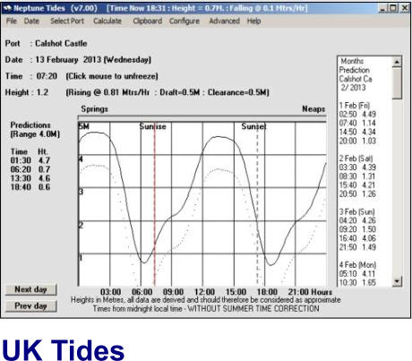 Neptune Tides for the PC an easy to use tidal height